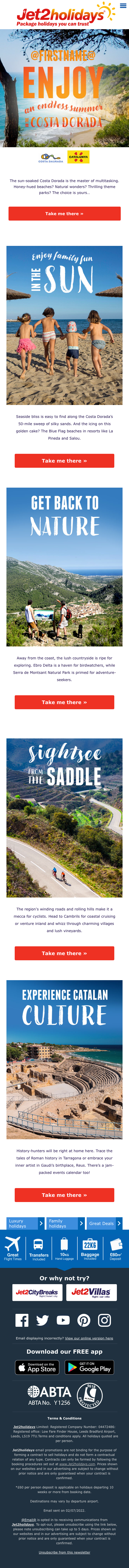 I worked with Jet2 as an email designer for about a year, their BAU campaigns are fast-paced and have various stakeholders from the Tourist boards to the Revenue team, so there are a few hoops to jump through and last-minute changes.